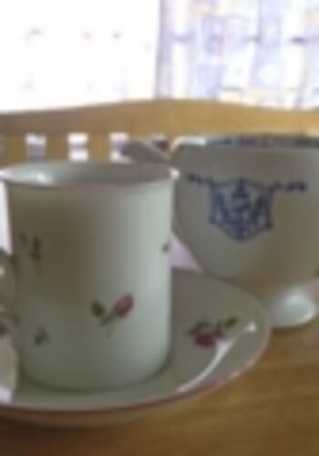 ひとりゐる春昼の部屋紅茶の香 この写真のカップもポットも頂いた物。 カップは30年も前に誕生日のお祝いに友達から。 ポットはクリスマスのプレゼントに。このポットを箱から出したとき、蓋はどこだろうと箱の中を探しに探した。でもこういうデザインらしい…