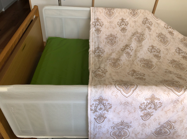 掛け布団も重いからか掛けてなくて、病院では大判のバスタオルを掛けてる。